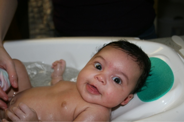 Grinning for Aunt Bets after bath. With crazy hair and all. One of my favorite pictures of us.